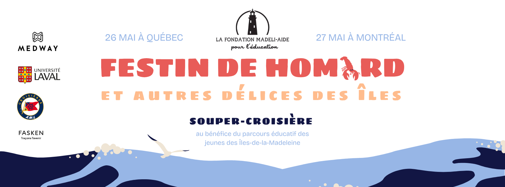 Organisé au profit du parcours éducatif des jeunes des Îles-de-la-Madeleine, cet événement signature de la Fondation Madeli-Aide pour l’éducation promet une soirée gourmande et inspirante : témoignages de boursiers de la Fondation, vin et homard frais des Îles à volonté, bouchées du terroir madelinot, croisière au coucher du soleil et ambiance conviviale à l’image des Madelinots.